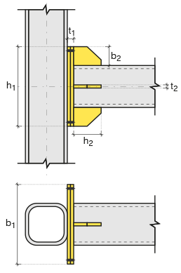 With the Box/Tube End Plate Connection command, column-beam connection is defined. In this connection, beams have box or tube profile.