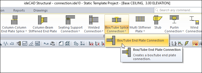 From the Connection menu, click on the Box/Tube End Plate Connection icon.