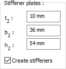 Stiffener plate ![]() The stiffener plate is determined by entering the value. The values to be entered are shown in the schematic drawing. |