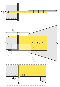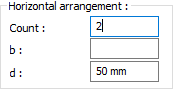 Horizontal arrangement ![]() The horizontal arrangement distance value of bolts is entered. The values to be entered are shown in the schematic drawing. |