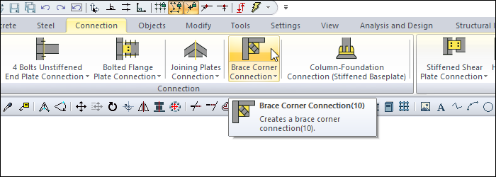 From the Connection tab, click the icon Brace Corner Connection.