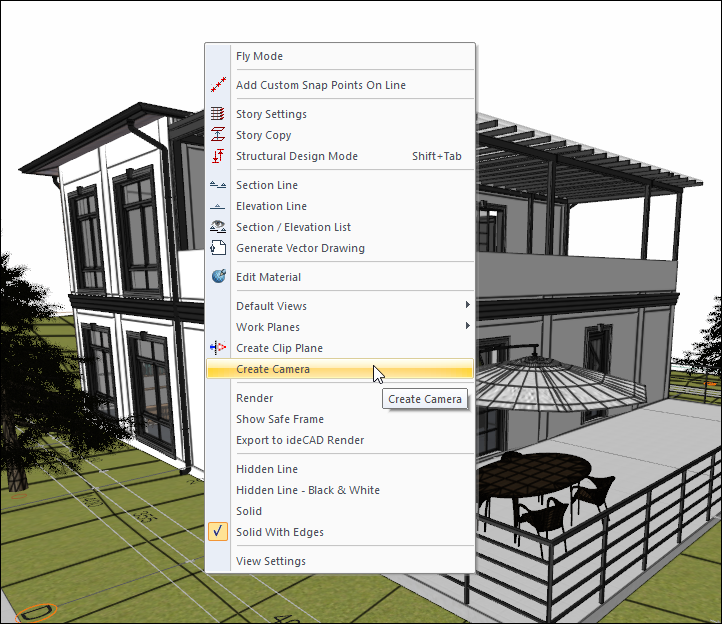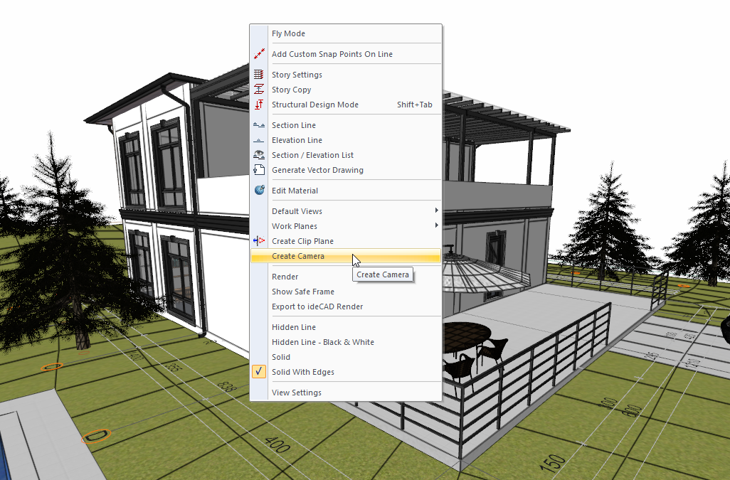 With the camera and create camera commands, the camera is defined in order to return to the same viewpoint without having to adjust it again after working in different views.