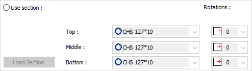 Use section ![]() By selecting the option, one of the ready profiles is selected from the lists as a plate. By clicking on the Load section button, you can reach the ready section library and reach the list of American and European finished rolling sections and select from the list. The selected profile can be rotated if desired. |