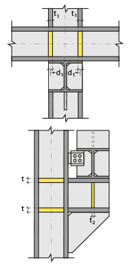 Column stiffeners ![]() Column stiffeners are determined by entering the values. The values to be entered are shown in the schematic drawing. |
