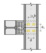 Group 1 ![]() Distance values of bolts to beam and other bolts are entered. The values to be entered are shown in the schematic drawing. |