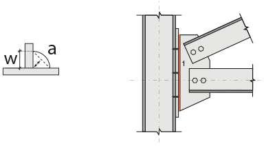 In the design data, the connection elements material is defined. The condition that the main element in the weld joint has less strength than the weld strength is controlled.