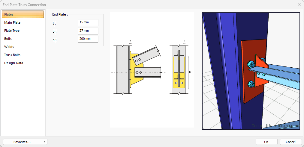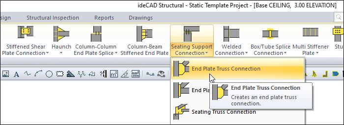 From the connection menu, click on the End Plate Truss Connection row.