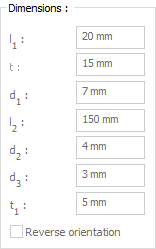 Bolt properties ![]() The Hole and Bolt Parameters dialog is opened by clicking on the bolt properties button. The bolt properties are set in this dialog. |