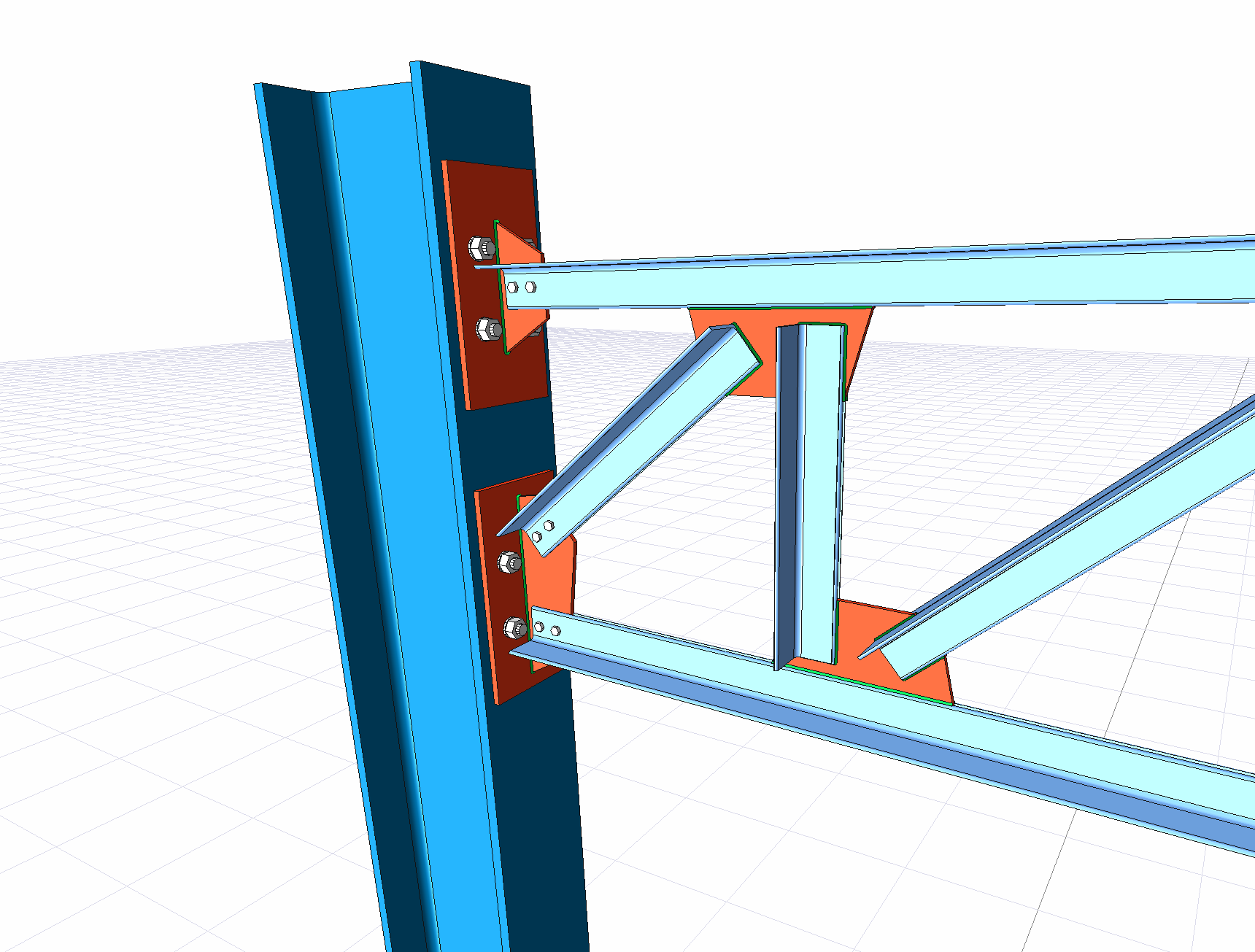 With the End Plate Truss Connection command, column-truss connection is defined.