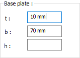 Stiffener plate ![]() The stiffener plate is determined by entering the value. The values to be entered are shown in the schematic drawing. |