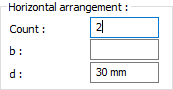 Horizontal arrangement ![]() The horizontal arrangement distance value of the bolts is entered. The values to be entered are shown in the schematic drawing. |