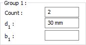 Group 1 ![]() Distance values of bolts to beam and other bolts are entered. The values to be entered are shown in the schematic drawing. |