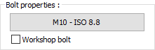 Bolt properties ![]() The Hole and Bolt Parameters dialog is opened by clicking on the bolt properties button. The bolt properties are set in this dialog. |