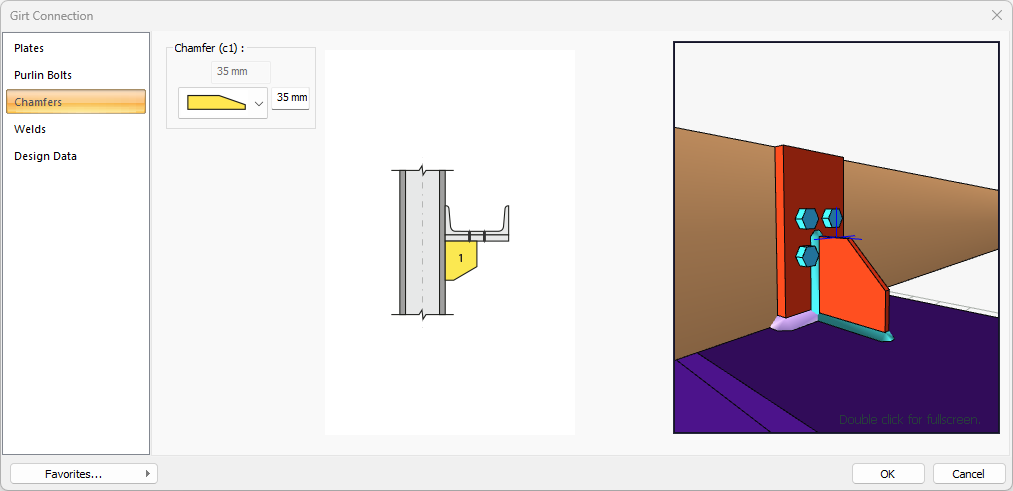 Welds ![]() The thickness, type and angle values of the welds to be made at the connections are given. The information on whether it will be done on the construction site or not is entered. |