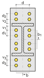 Group 1 ![]() Distance values of bolts to beam and other bolts are entered. The values to be entered are shown in the schematic drawing. |