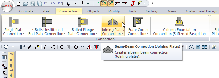 With the Joining Plates Connection command, beam-secondary beam connection is defined.