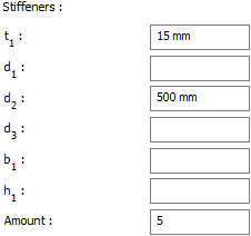 Stiffeners ![]() The number and properties of the stiffeners are determined by entering the values. The values to be entered are shown in the schematic drawing. |