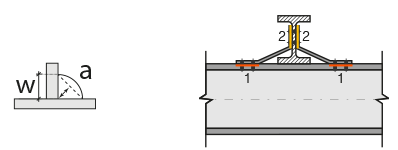 In the design data, the connection elements material is defined. The condition that the main element in the weld joint has less strength than the weld strength is controlled.