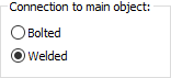 Connection to main object ![]() Welded or bolted connection type is selected for connection to the main object. |