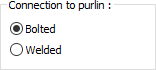 Connection to purlin ![]() Welded or bolted connection type is selected for connection to the purlin. |