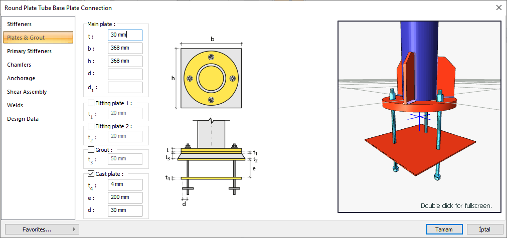 Location of the Round Plate Tube Base Plate Connection Dialog