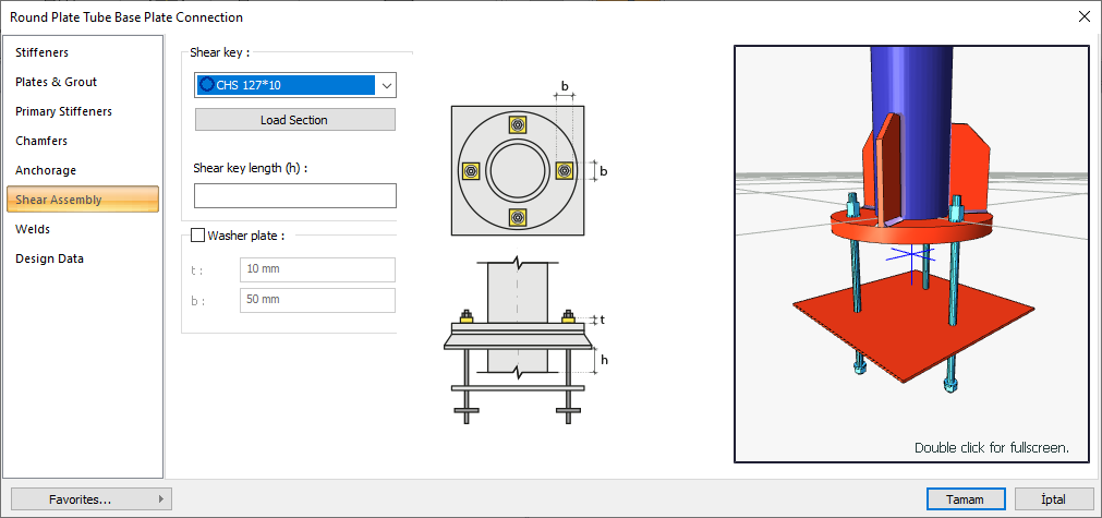 Shear key ![]() One of the ready-made profiles is selected from the list as a shear key. By clicking on the Load section button, you can reach the ready section library and reach the list of American and European finished rolling sections and select from the list. |