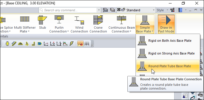 From the connection menu, click the Round Plate Tube Base Plate icon.