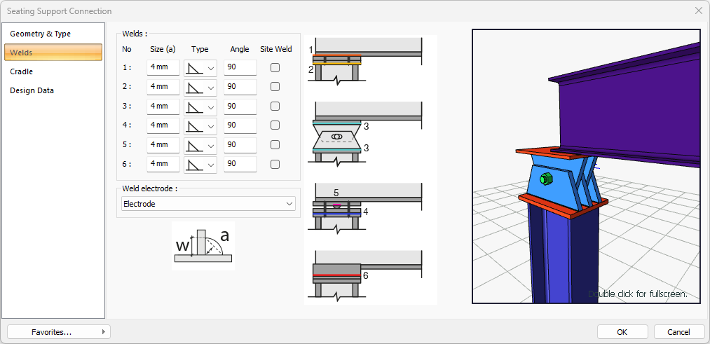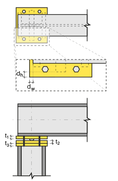 In the design data, the connection elements material is defined. The condition that the main element in the weld joint has less strength than the weld strength is controlled.