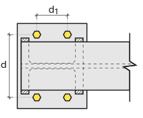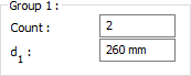 Group 1 ![]() Distance values of bolts to beam and other bolts are entered. The values to be entered are shown in the schematic drawing. |