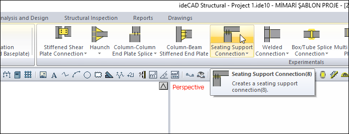 With the Seating Support Connection command, column-beam connection is defined.