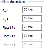 Plate dimensions ![]() Plate dimensons are determined by entering values. The values to be entered are shown in the schematic drawing. |