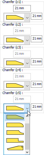 Chamfer (c1, c2, c3, c4, c5) ![]() For easy assembly of the plates in the field, the use of slope, slope type and geometric properties are determined by entering the value. |
