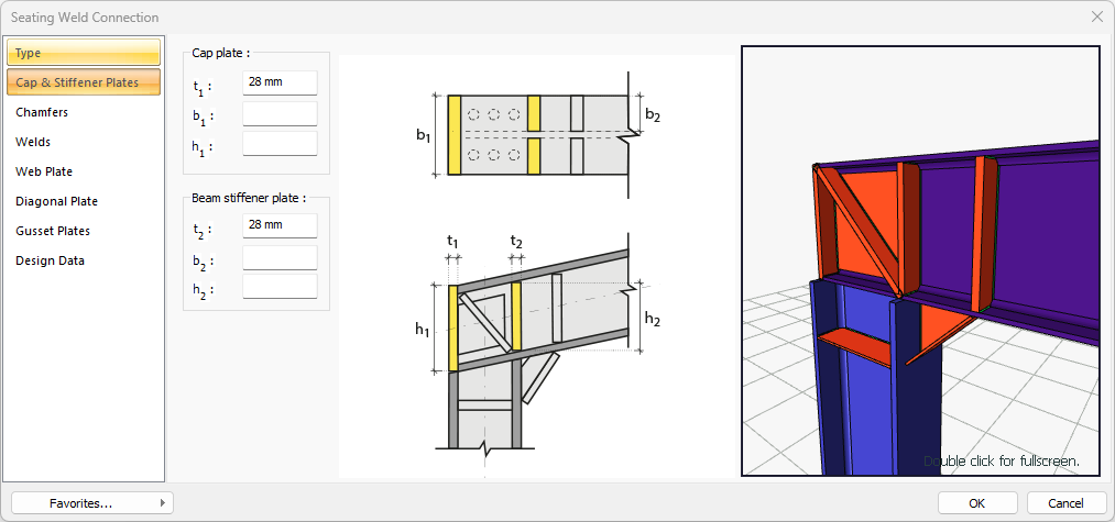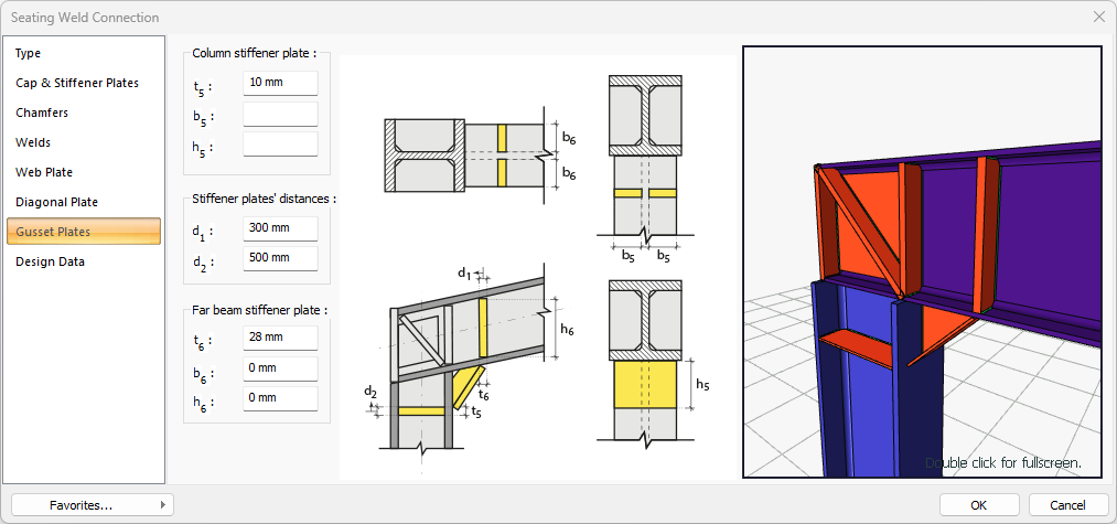 Beam stiffener plate ![]() Beam stiffener plate is determined by entering the value. The values to be entered are shown in the schematic drawing. |