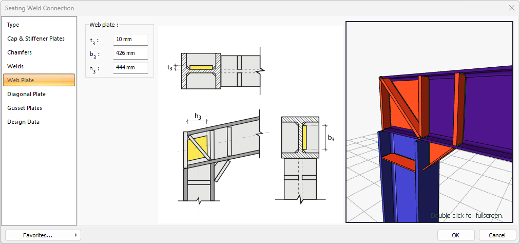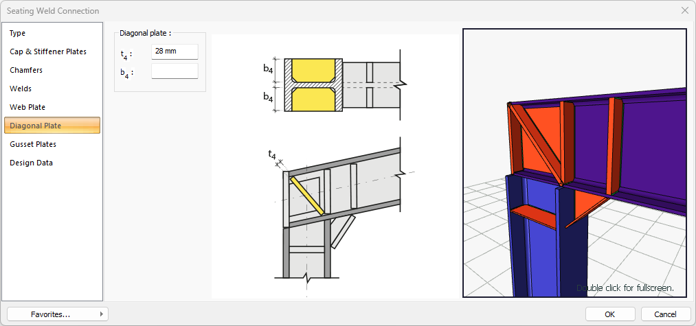 Type ![]() For connection, web, diagonal and gusset plate selections are made. |