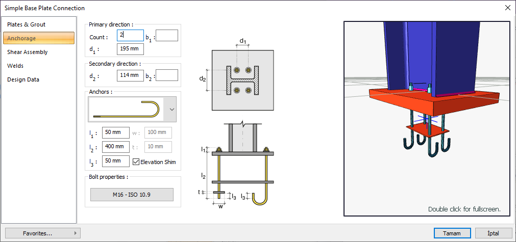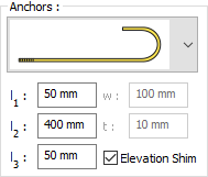 Anchors ![]() ![]() Anchor type is selected from the list. Anchor dimensions are determined by entering values. The values to be entered are shown in the schematic drawing. |