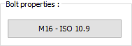 Bolt properties ![]() The Hole and Bolt Parameters dialog is opened by clicking on the bolt properties button. The bolt properties are set in this dialog. |