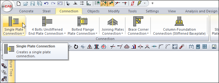 From the Connection menu, click the Single Plate Connection icon.