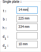 Single plate ![]() The properties of the plate are determined by entering the values. The values to be entered are shown in the schematic drawing. |