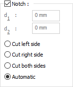 Notch ![]() If the option is selected, notching is done according to the entered values and selections. The values to be entered are shown in the schematic drawing. |