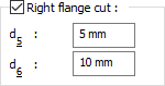 Right flange cut ![]() If the option is selected, right flange cutting is made according to the entered values. The values to be entered are shown in the schematic drawing. |