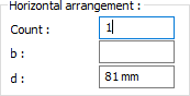 Horizontal arrangement ![]() Horizontal arrangement settings (number of horizontal bolt columns, distance values ..) of beam bolts are entered. The values to be entered are shown in the schematic drawing. |