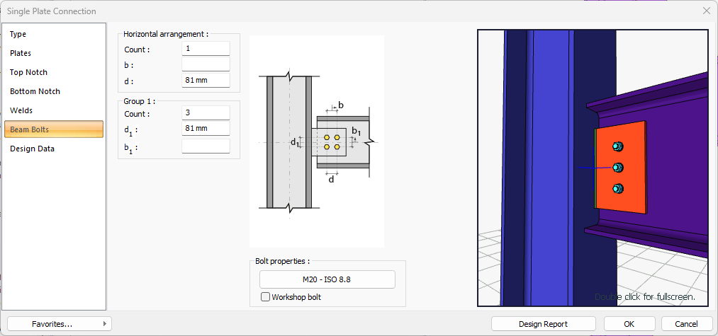 Single Plate Connection Settings Dialog