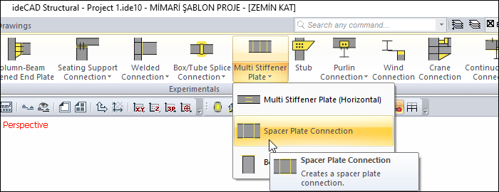 Click on the Spacer Plate Connection icon from the Connection menu.