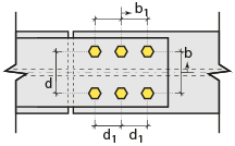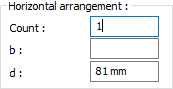 Horizontal arrangement ![]() The horizontal arrangement distance value and number of bolts are entered. The values to be entered are shown in the schematic drawing. |