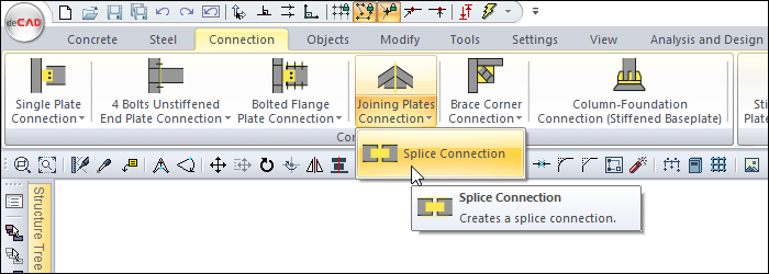 With the Splice Connection command, splice connection is defined in columns and beams.