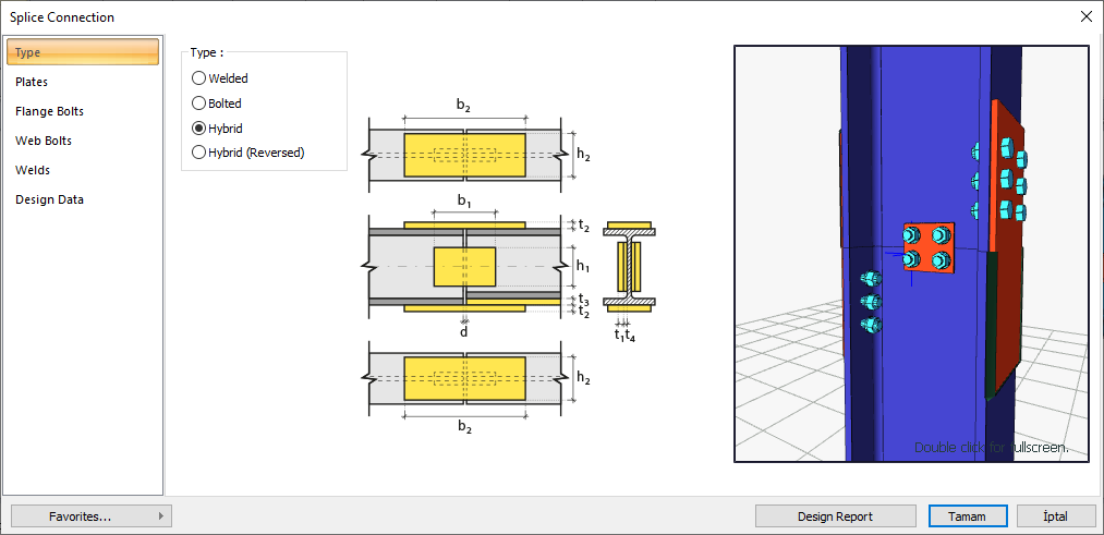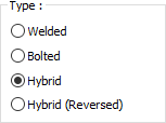 Type ![]() For the connection, one of the welded, bolted, hybrid or hybrid (reversed) connection types is selected. |