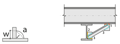 In the design data, the connection elements material is defined. The condition that the main element in the weld joint has less strength than the weld strength is controlled.