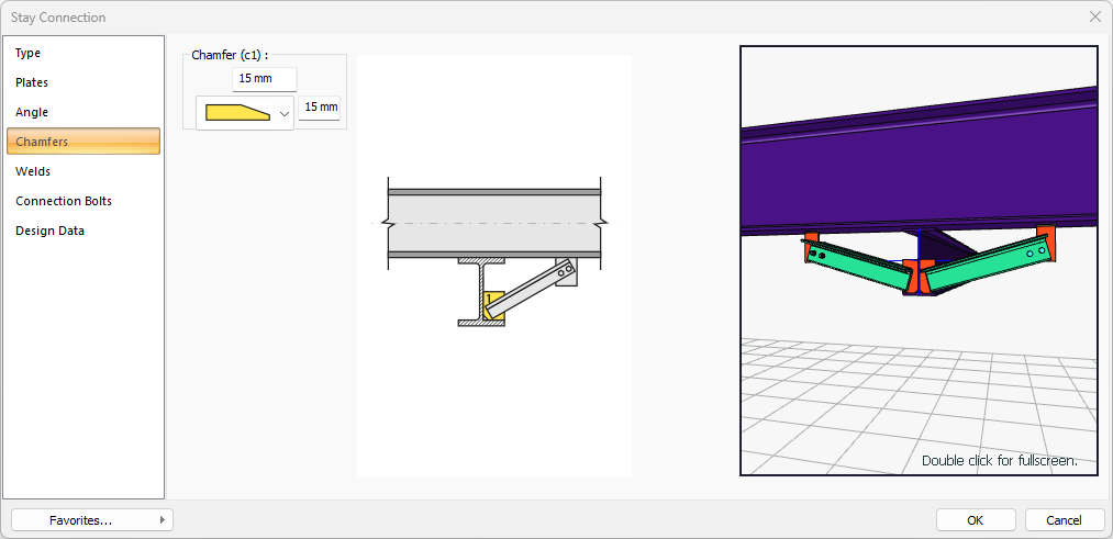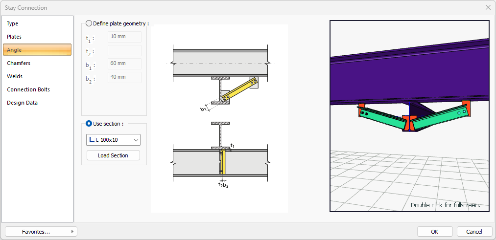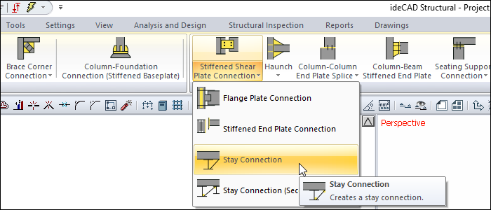 With the Stay Connection command, beam-beam connection is defined. It connects the steel beams that connection at different levels to each other with angle plate.