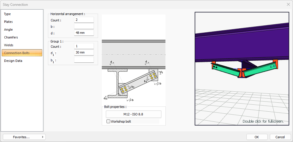 Connection type ![]() Connection type is selected for top and bottom plates. |