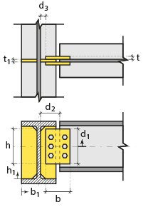 Group 1 ![]() Distance values of bolts to beam and other bolts are entered. The values to be entered are shown in the schematic drawing. |